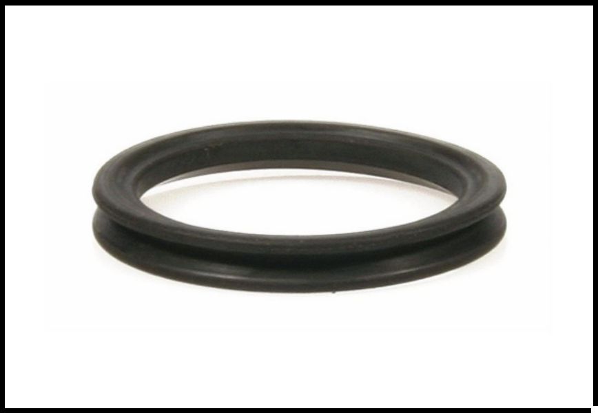 Junta circular preta de borracha sobre fundo branco