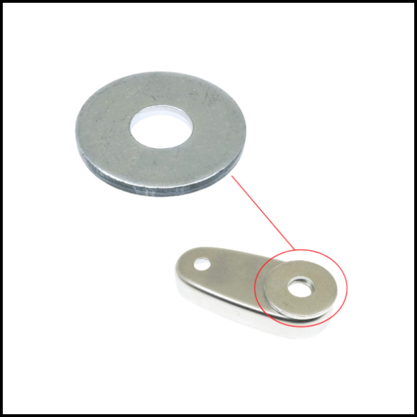Arruela metálica cinzenta e alavanca prateada com orifício