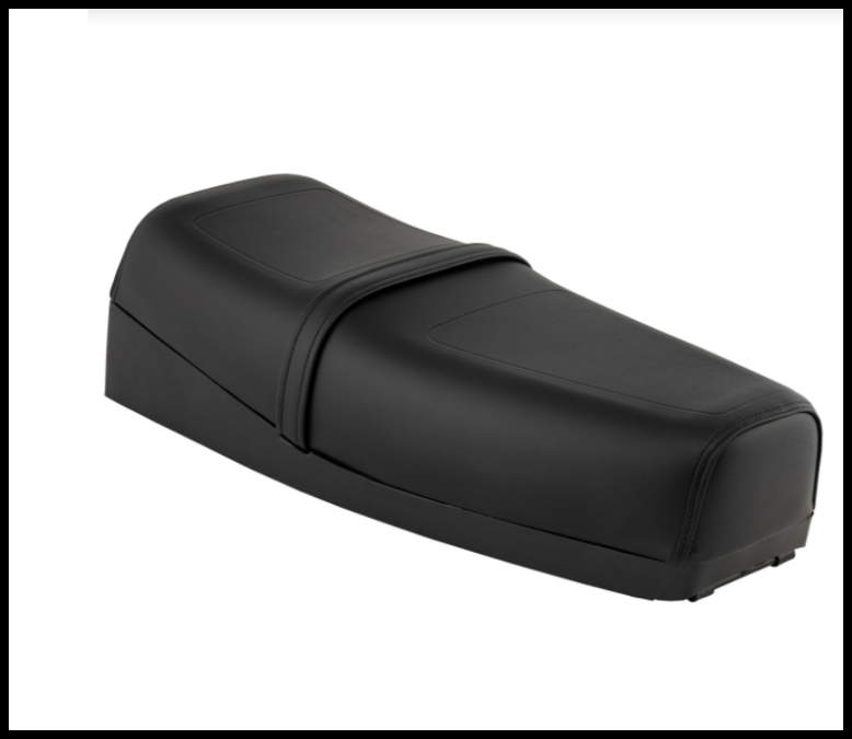 Banco de motocicleta preto em couro sintético sobre fundo branco