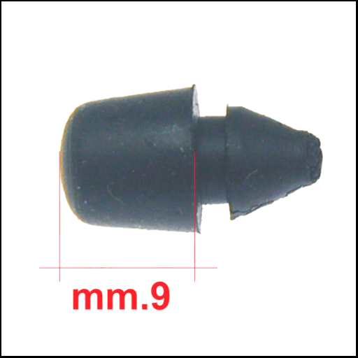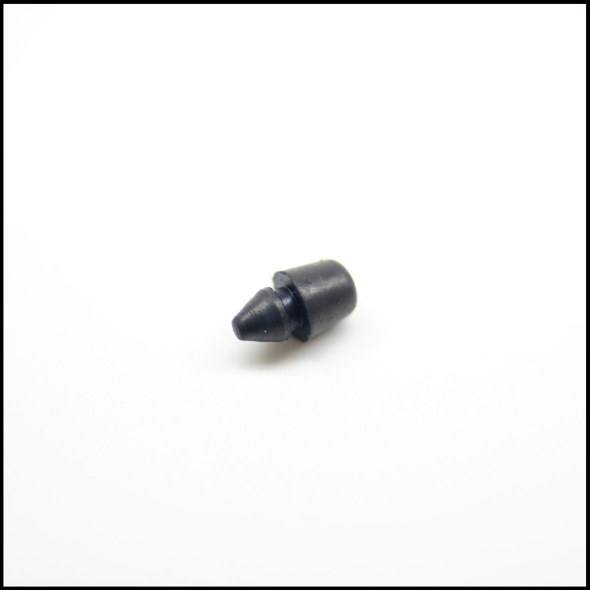 Peça pequena preta de borracha com 9 mm de comprimento em fundo branco