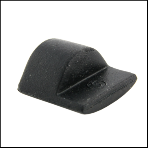 Peça pequena preta em plástico com formato de cunha arredondada