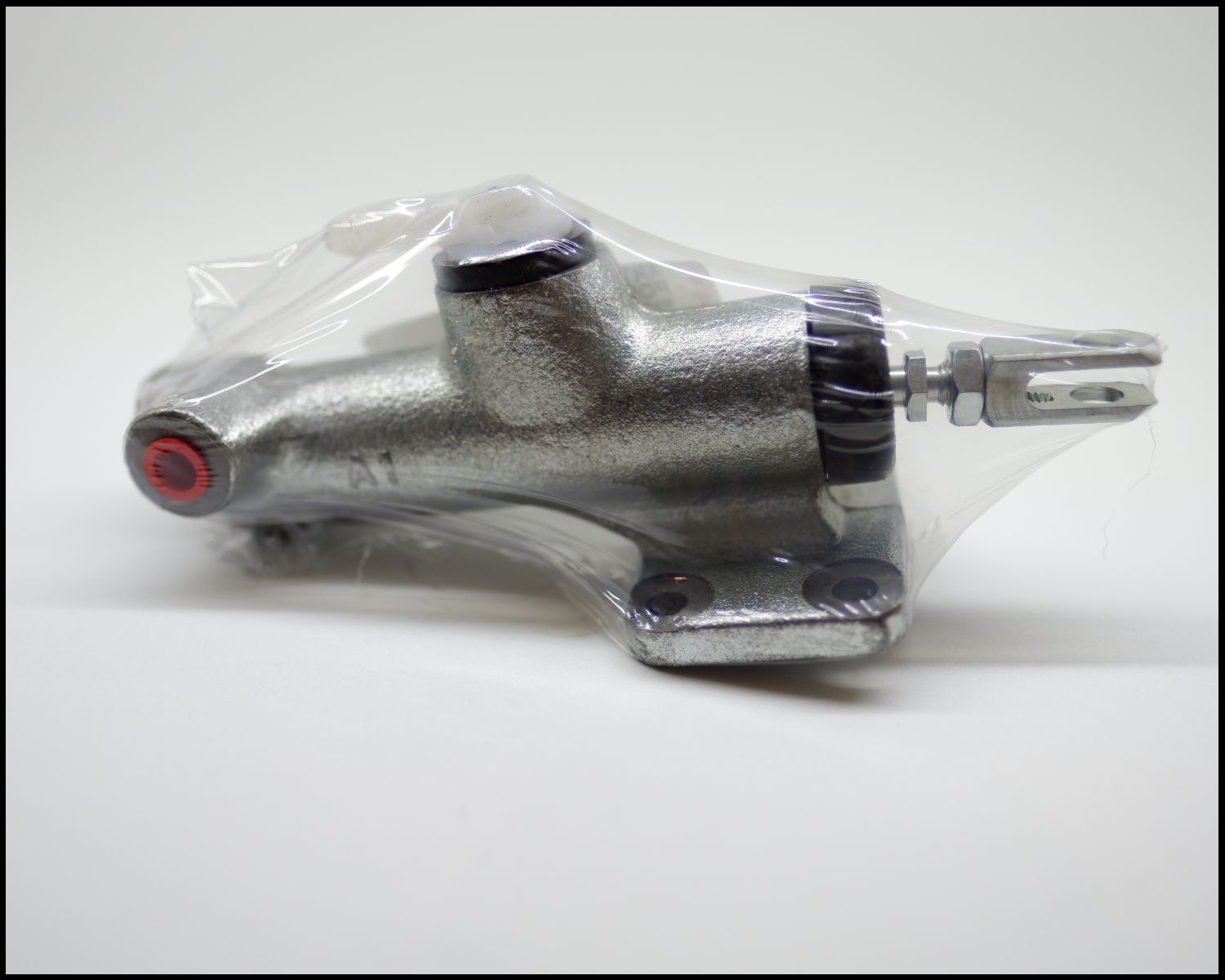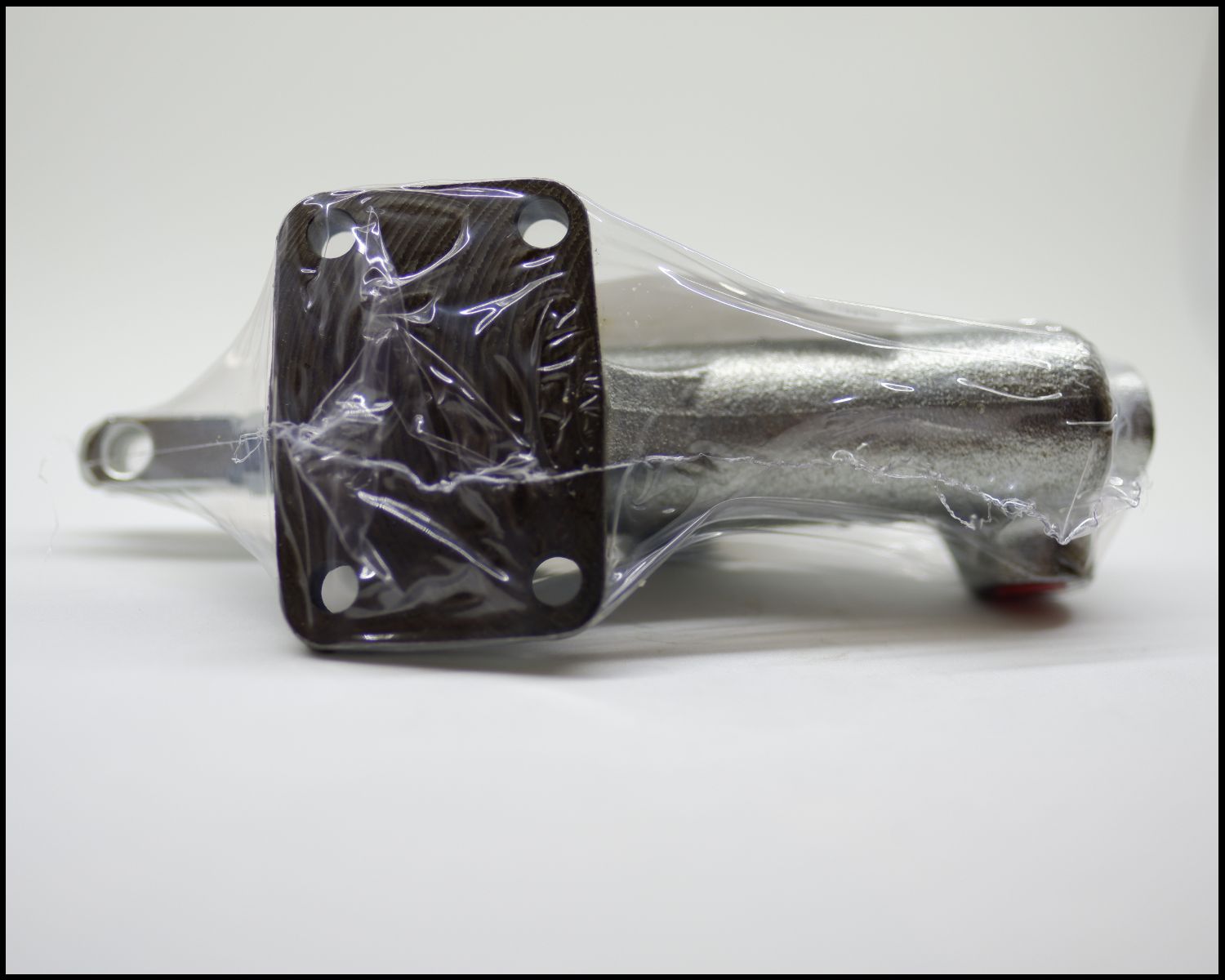 cilindro hidráulico metálico prateado embalado em plástico transparente