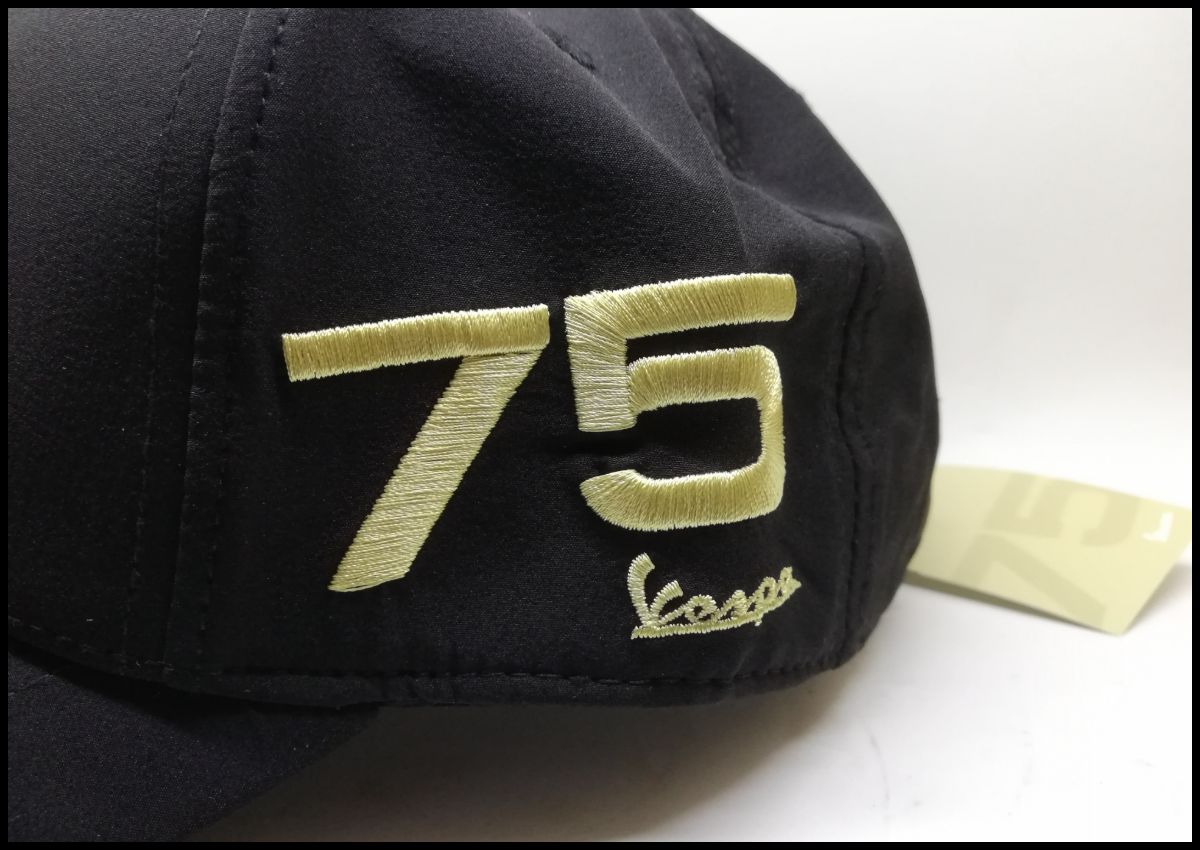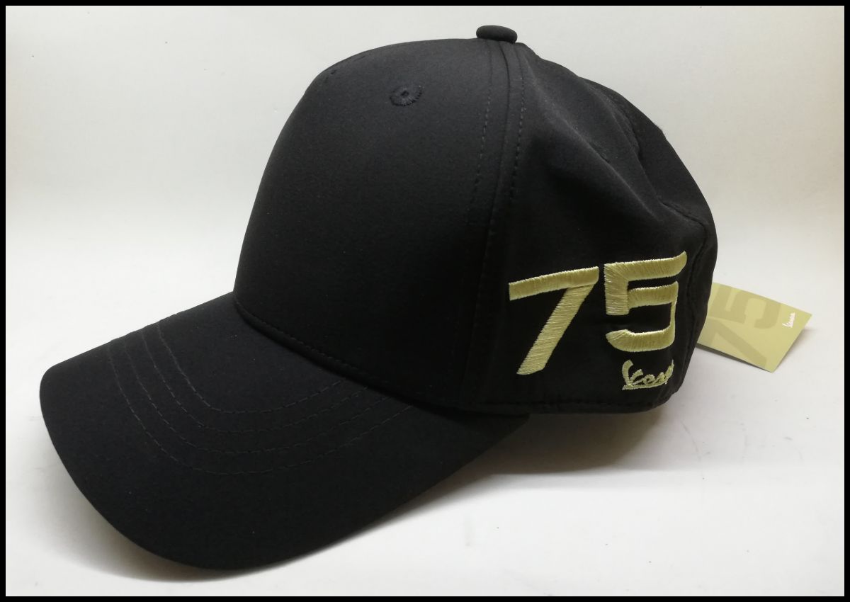 Boné preto com bordado amarelo claro '75 Levi's' em fundo branco