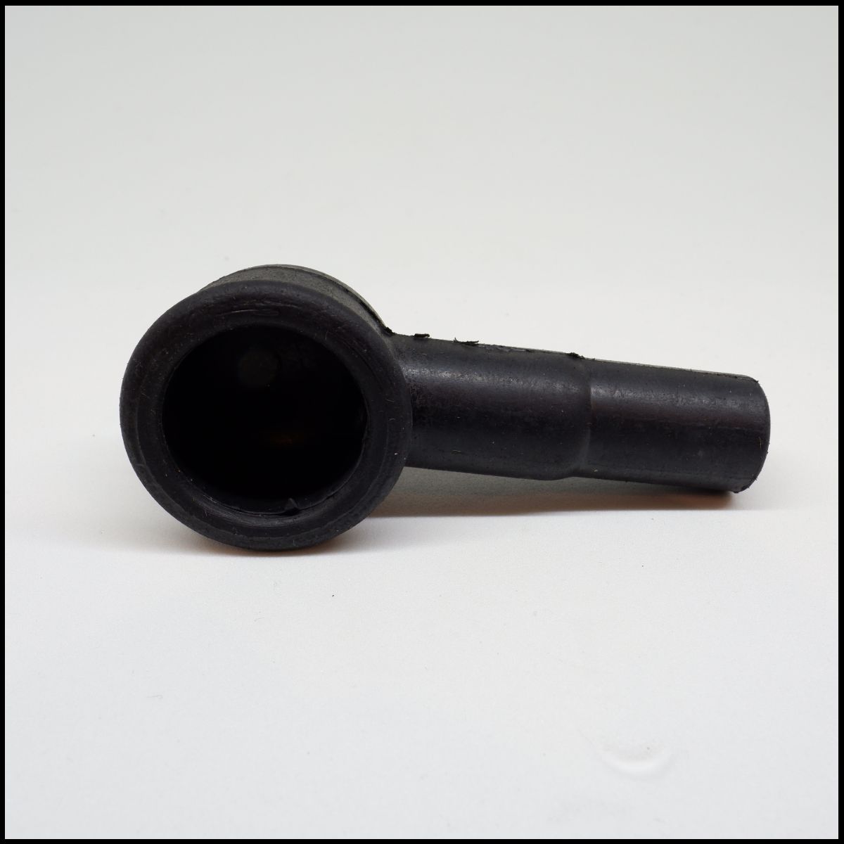Peça plástica preta tubular sobre fundo branco