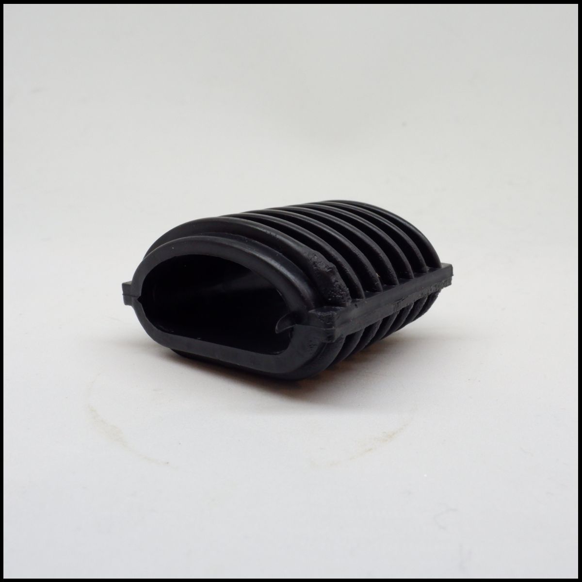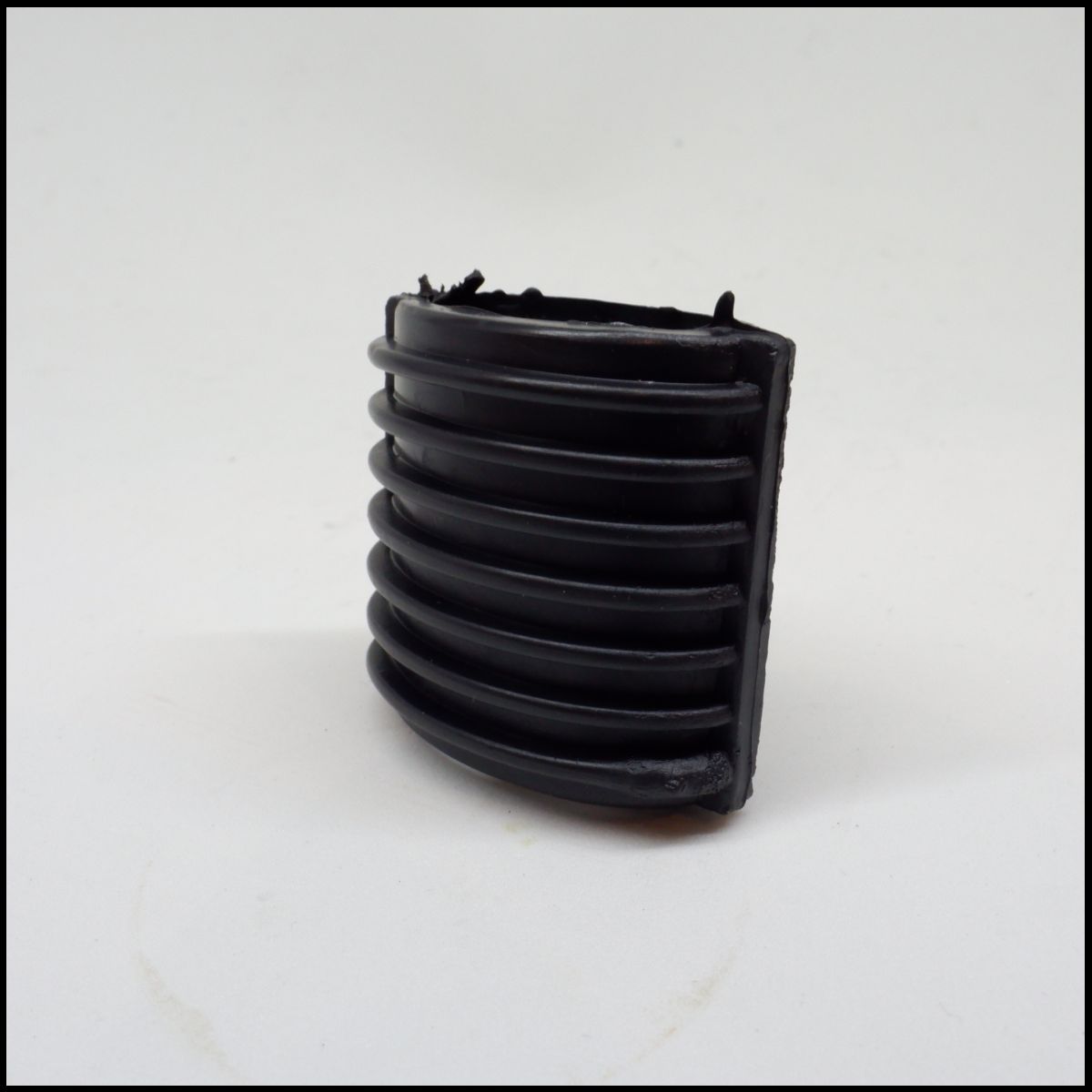Peça preta de borracha ou plástico com ranhuras, sobre fundo branco