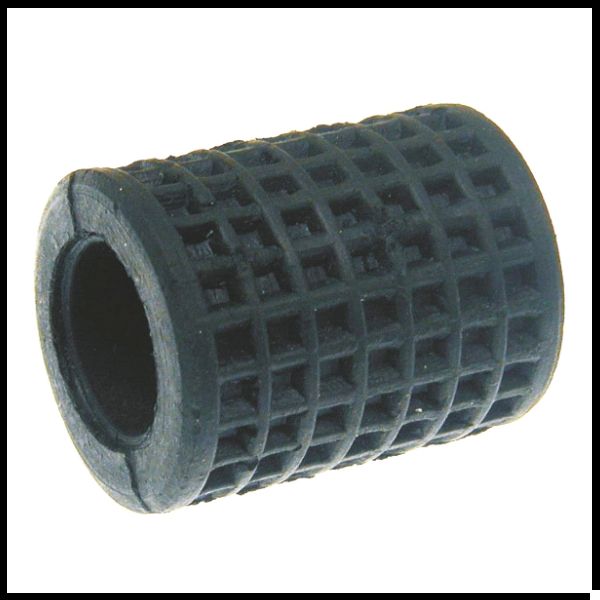 Peça cilíndrica de borracha preta texturizada com orifício central