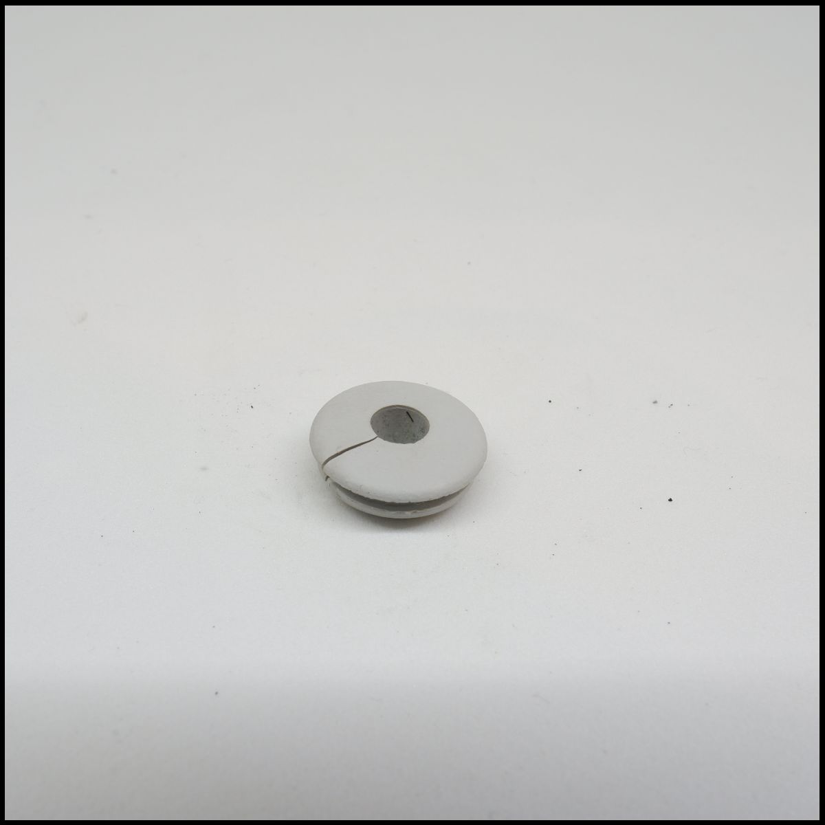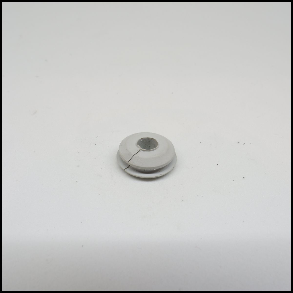Isolador branco redondo pequeno com fenda central
