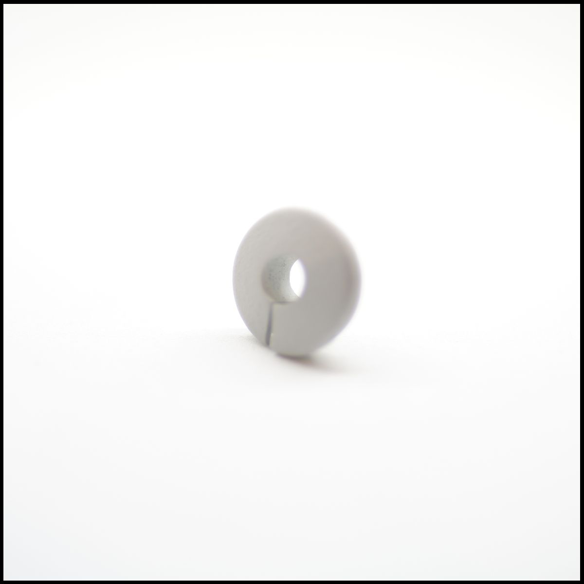 Anilha cinza circular com orifício e racha vertical