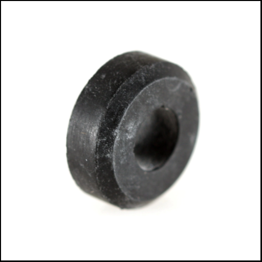 Peça redonda preta com furo no centro, sobre fundo branco.