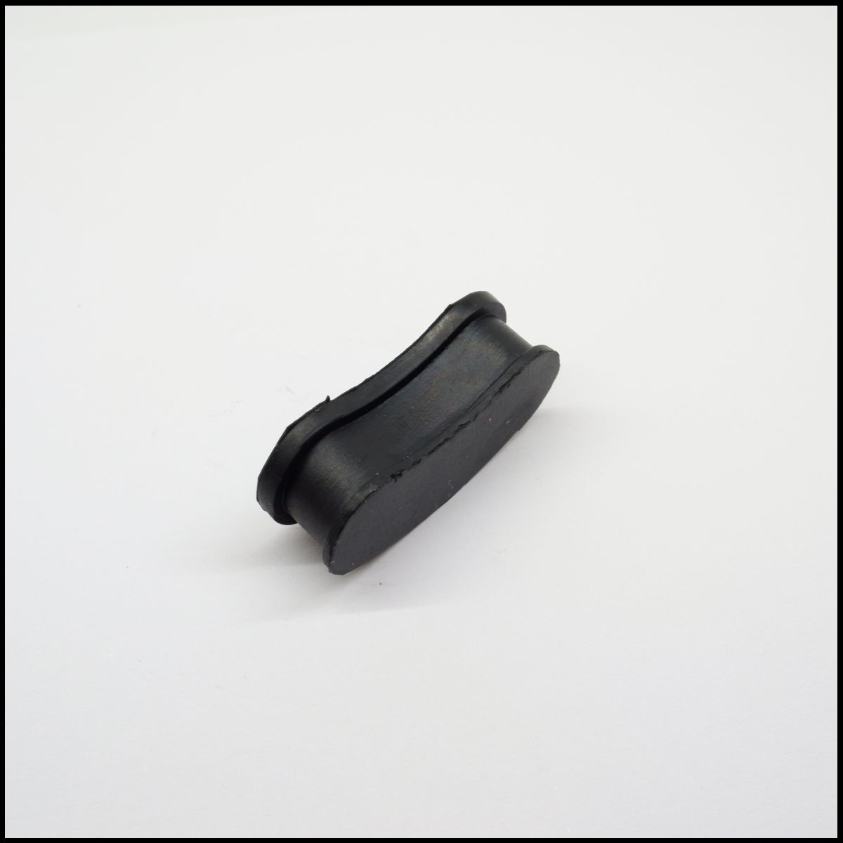 Peça pequena de borracha preta com formato oval