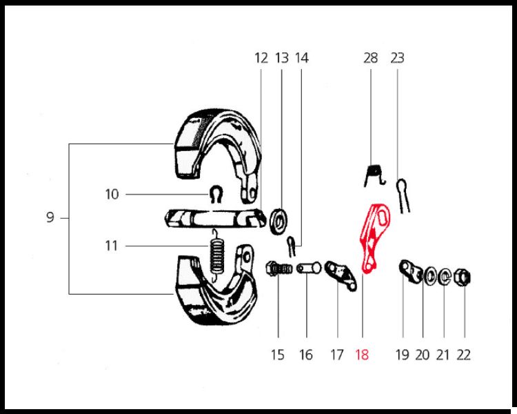 Braço alavanca travão atrás para Vespa P80/​P80-150X/​PX 80-150E/​Lusso/​'98/​MY/​P150S VNL/​TS/​VBA/​VBB/​VLA/​VLB/​VNC/​VBC Rally 180 também apropriado para LML Star 125-150 4T/​Star Deluxe 125-150 4S/​Speedy