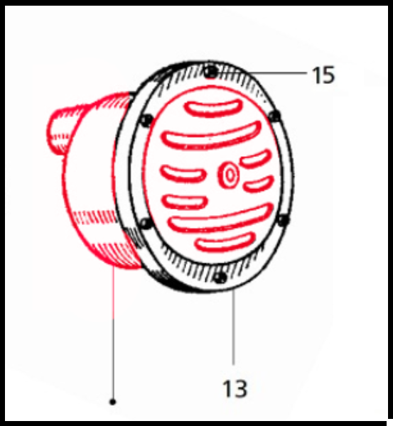 Dispositivo circular com grelha e números 13 e 15 em fundo branco