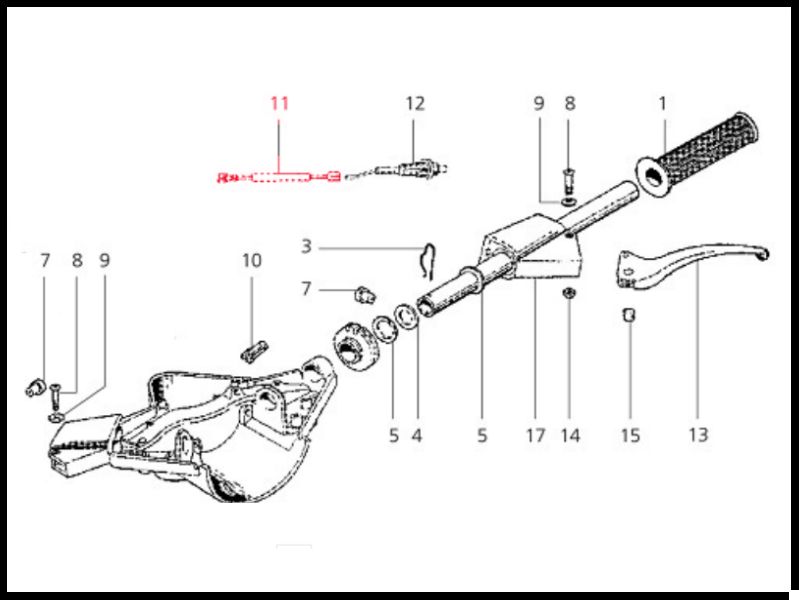Diagrama de peças de punho de acelerador de motocicleta com manete