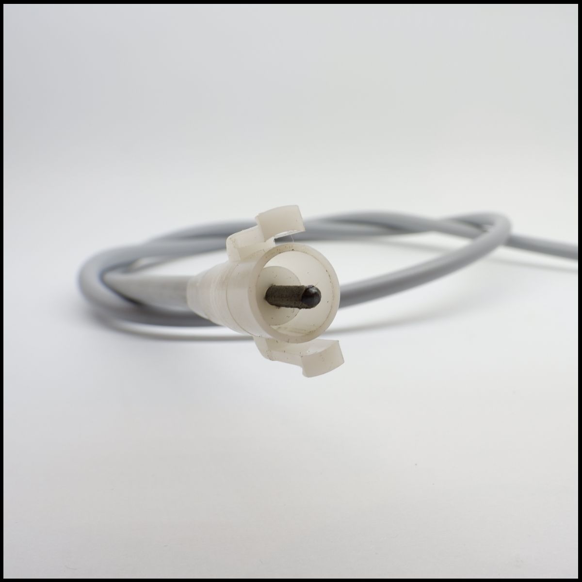 Cabo elétrico cinzento com ficha branca com pino metálico