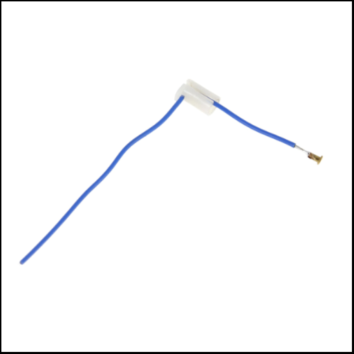 Cabo elétrico azul com conector branco e ponta metálica