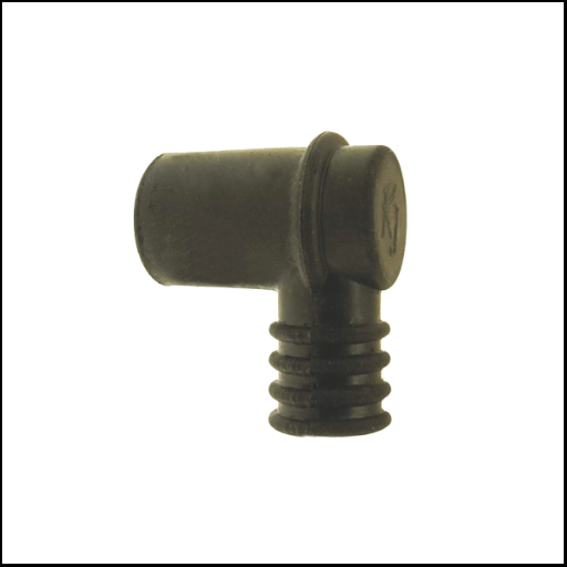 tampão plástico preto com forma em L sobre fundo branco