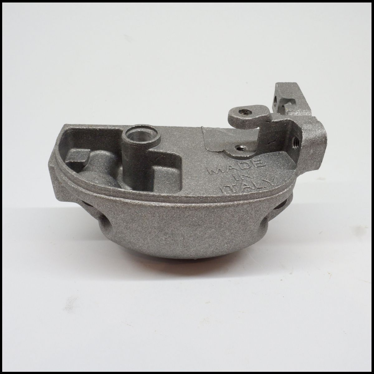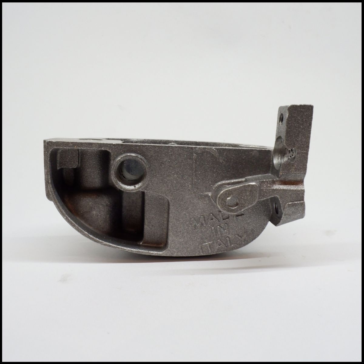 Peça metálica cinzenta com texto 'MADE IN ITALY'