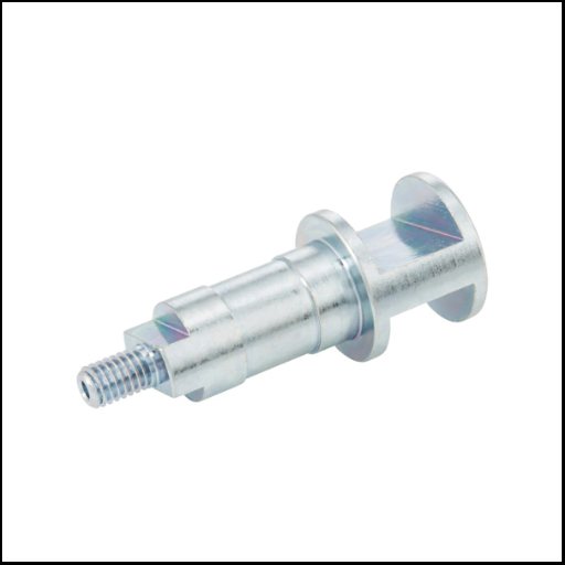 Peça metálica prateada cilíndrica com rosca e entalhes