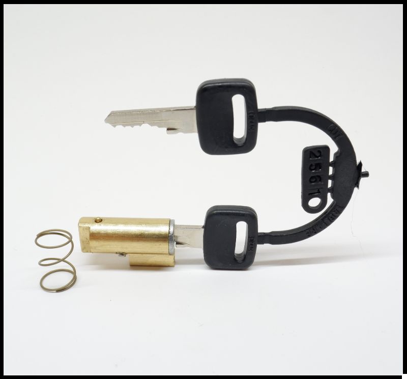 Chave metálica com cabo preto e detalhe numérico 2350 junto a molas metálicas