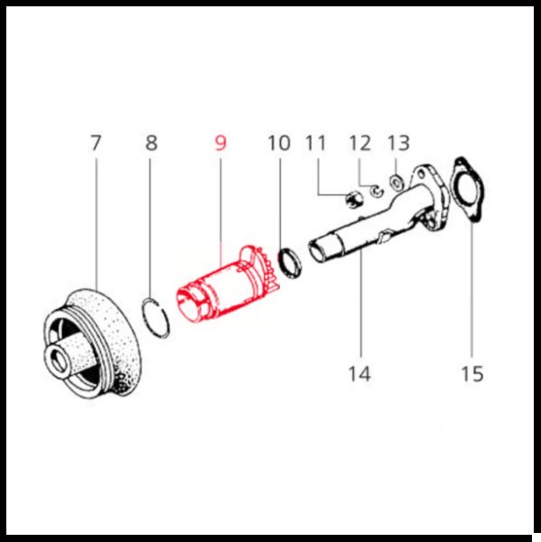 Diagrama técnico com peças automóveis numeradas e componente destacado em vermelho