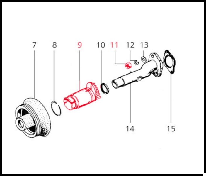 Desenho técnico de peças mecânicas numeradas para montagem
