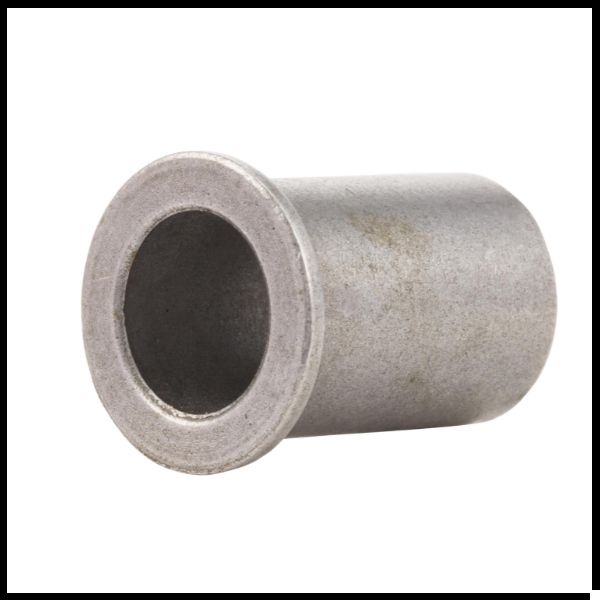 Casquilho metálico cilíndrico cinzento com borda alargada