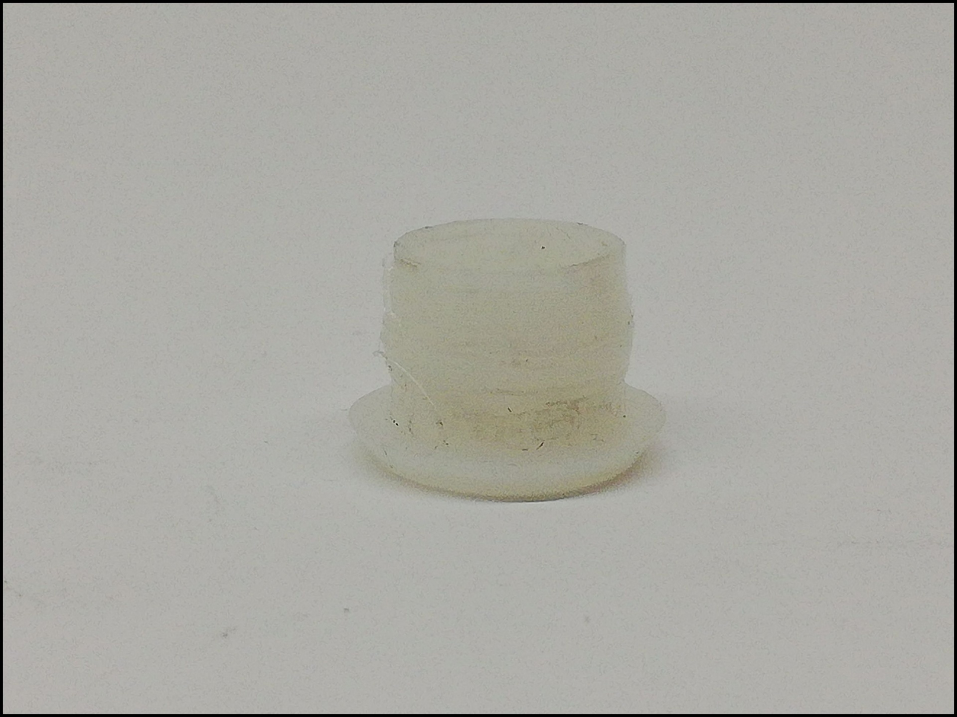 Pequeno produto plástico branco cilíndrico sobre fundo branco