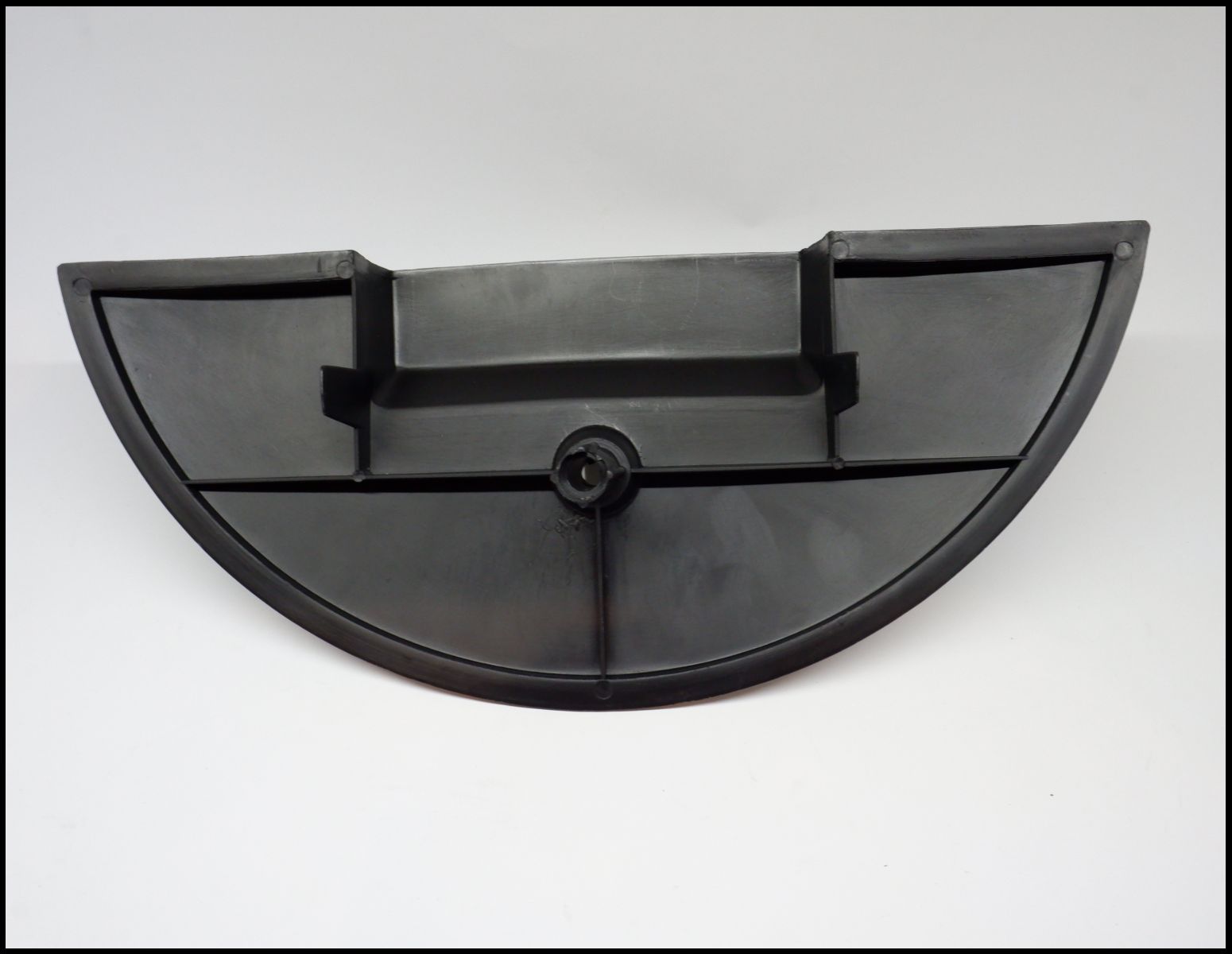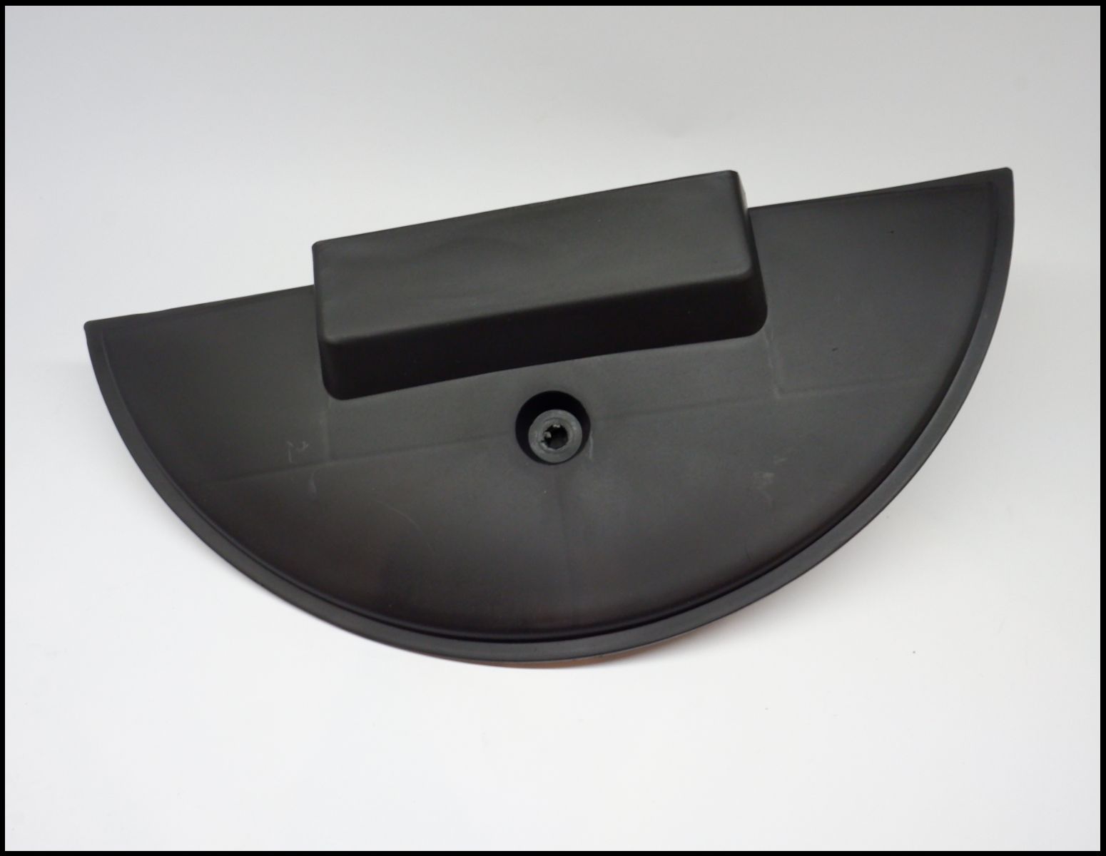 Suporte de plástico preto semicircular com parte retangular central e parafuso