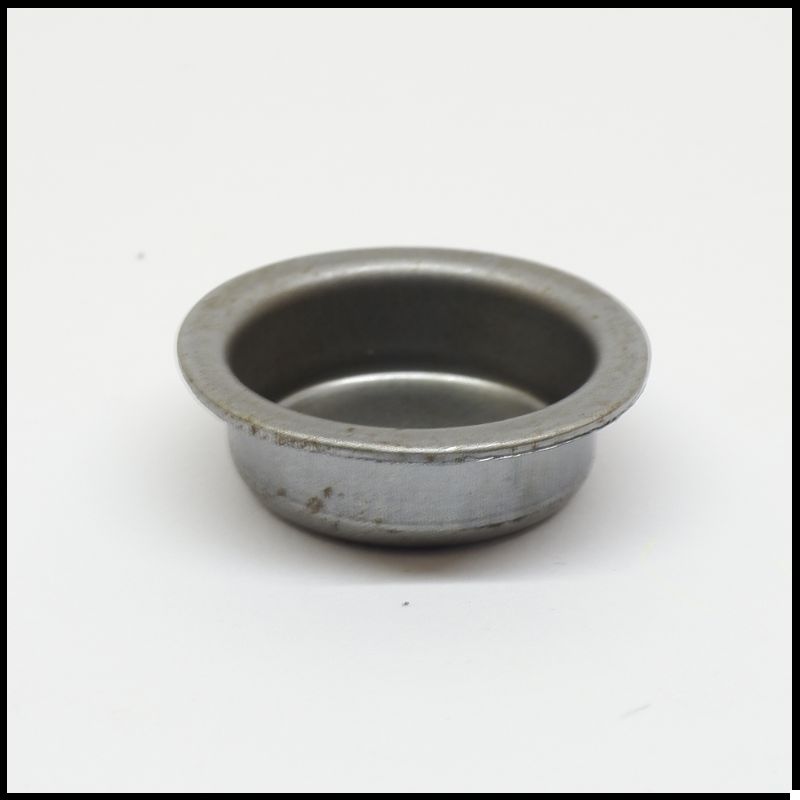 Pequena forma redonda de metal prateado sobre fundo branco
