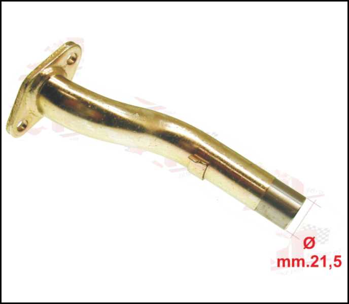 Tubo metálico dourado com base retangular de fixação e texto mm.21,5