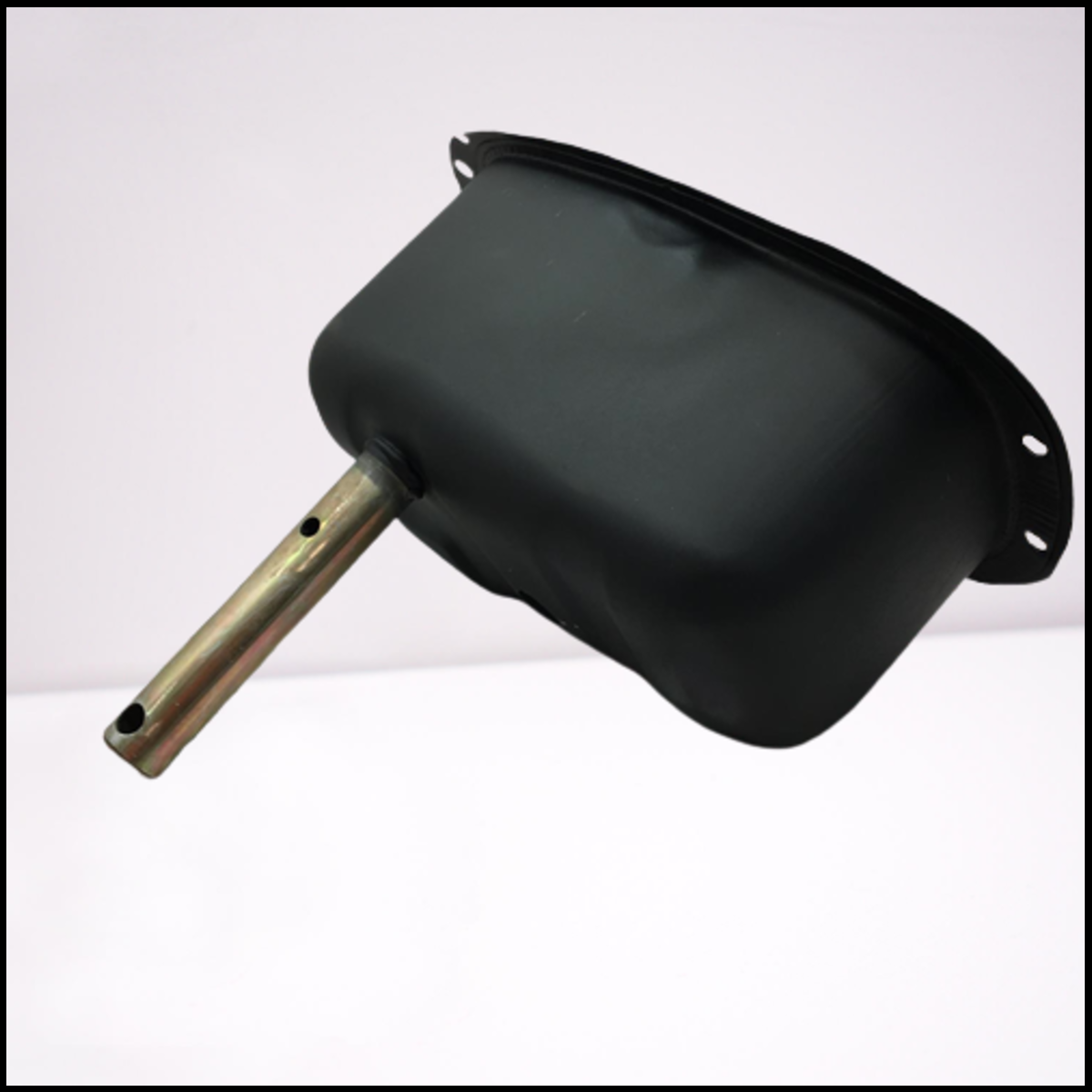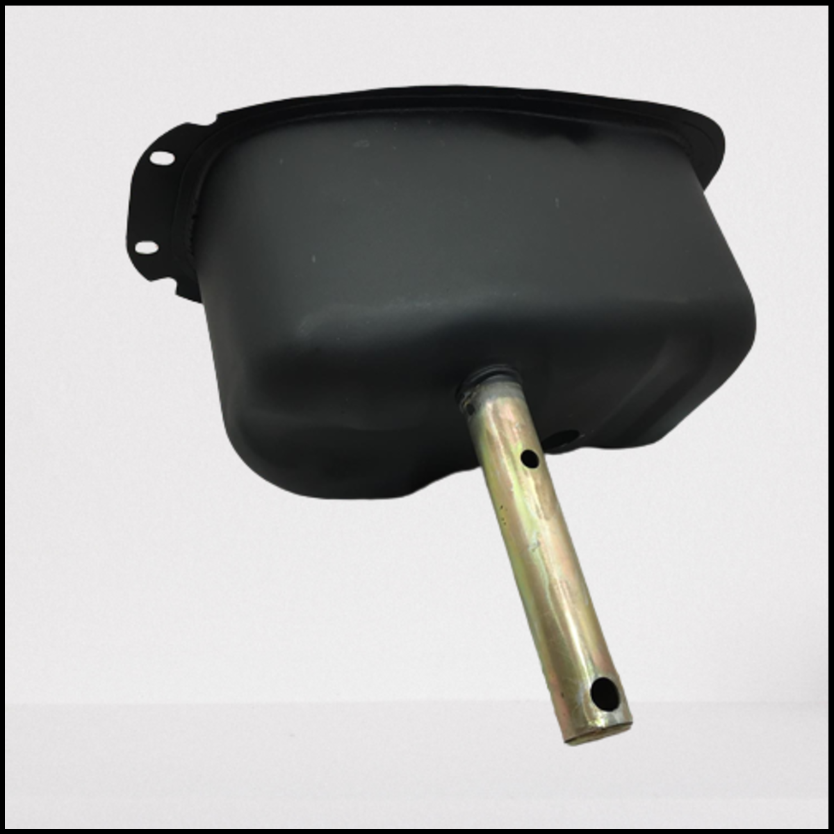 Componente automóvel metálico preto com tubo prateado e orifícios