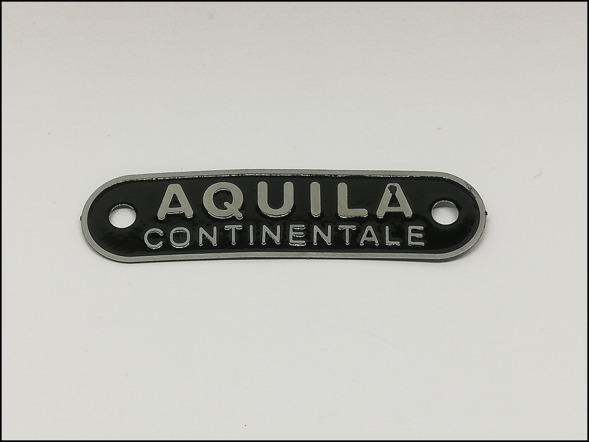 Placa metálica preta com texto prateado AQUILA CONTINENTALE