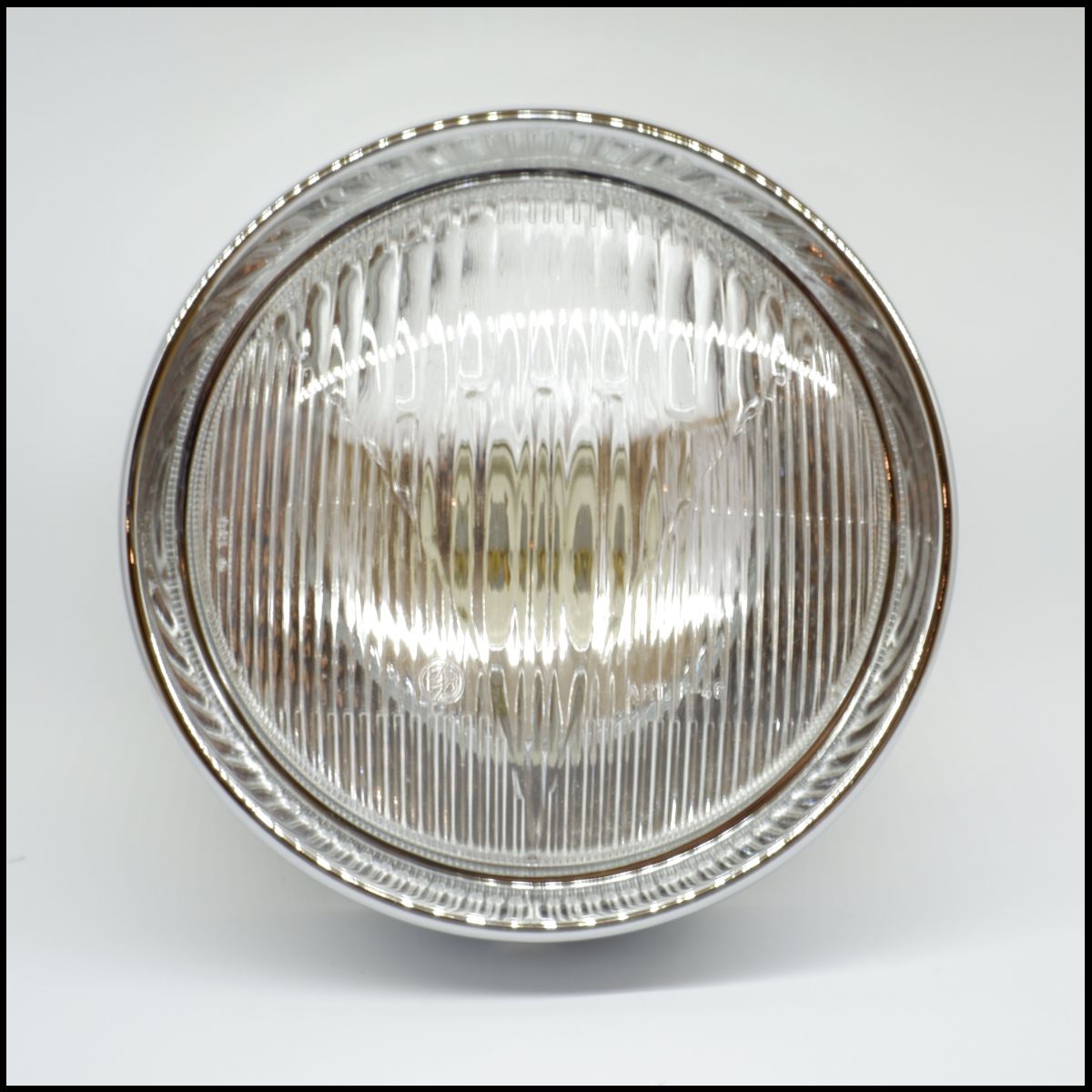 Luz redonda automóvel com lente de vidro canelado e borda metálica prateada