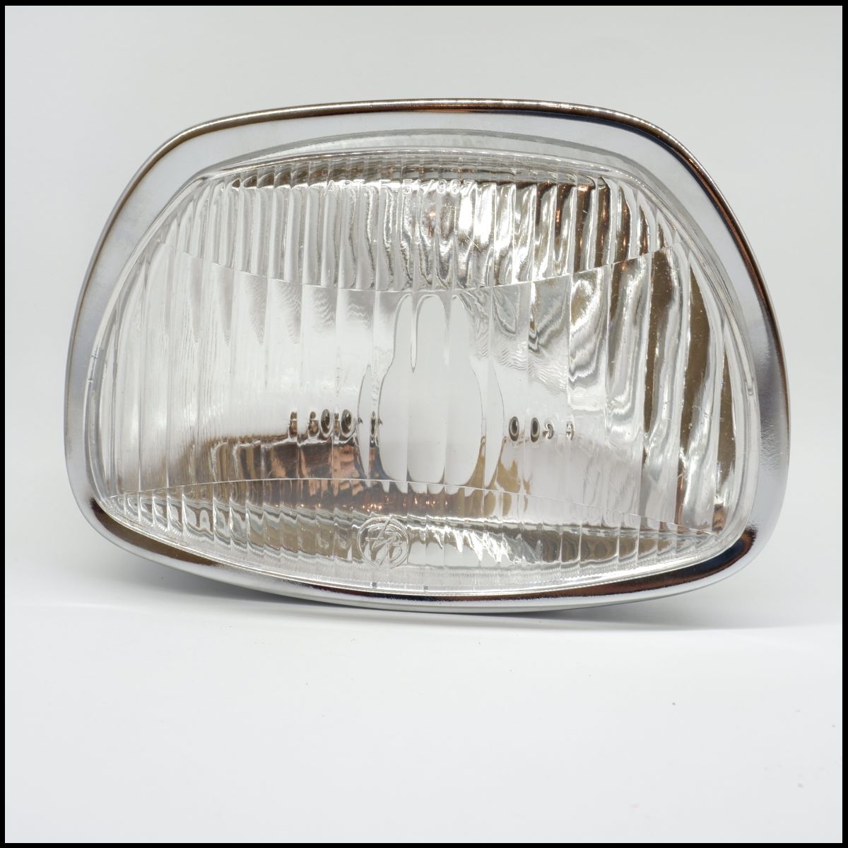 Farol de automóvel com lente de vidro e moldura cromada