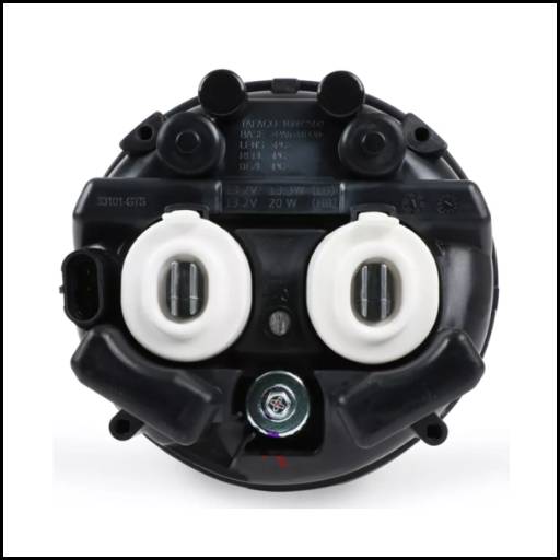 Farol redondo para automóvel em plástico transparente e estrutura cinza