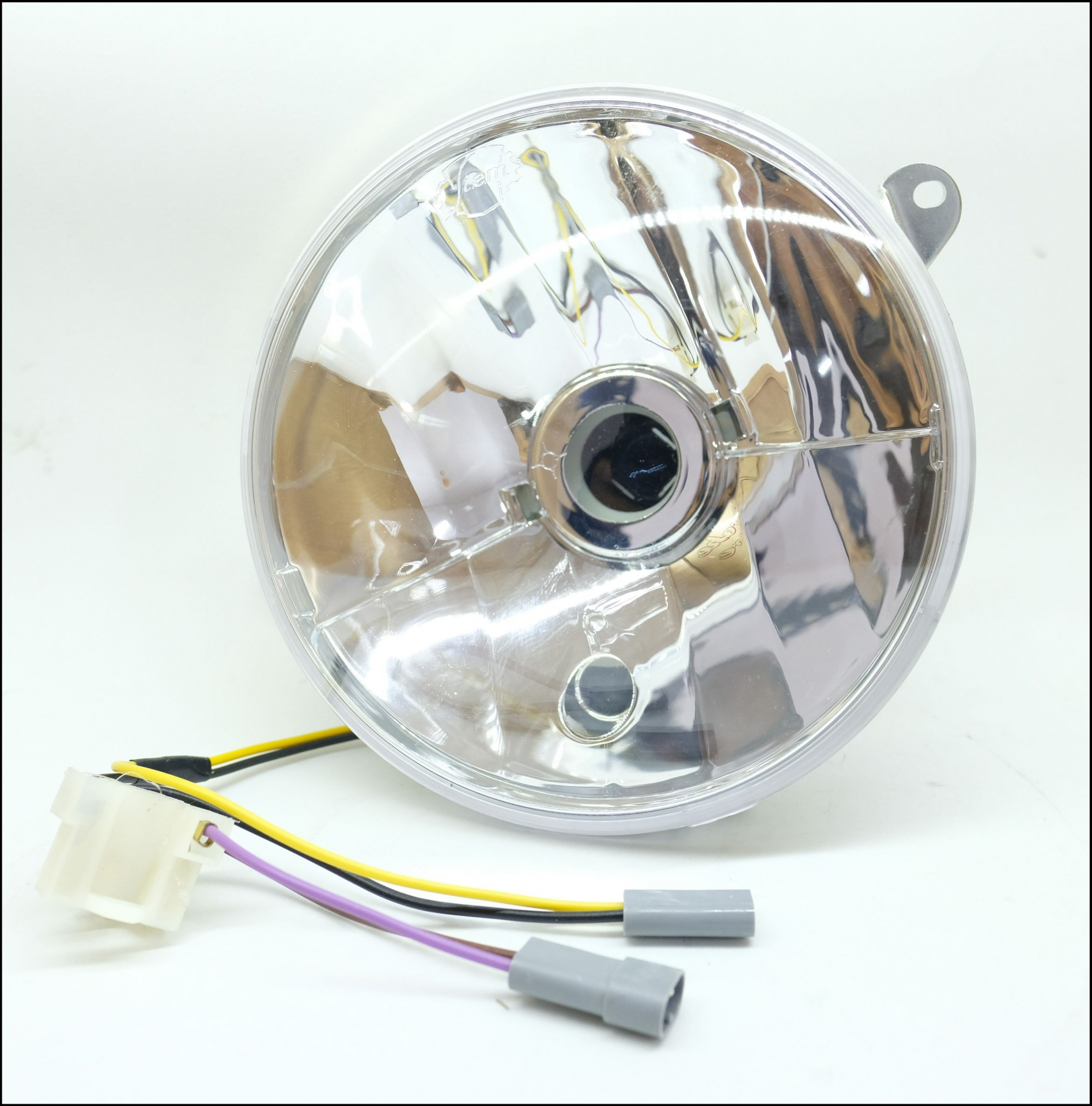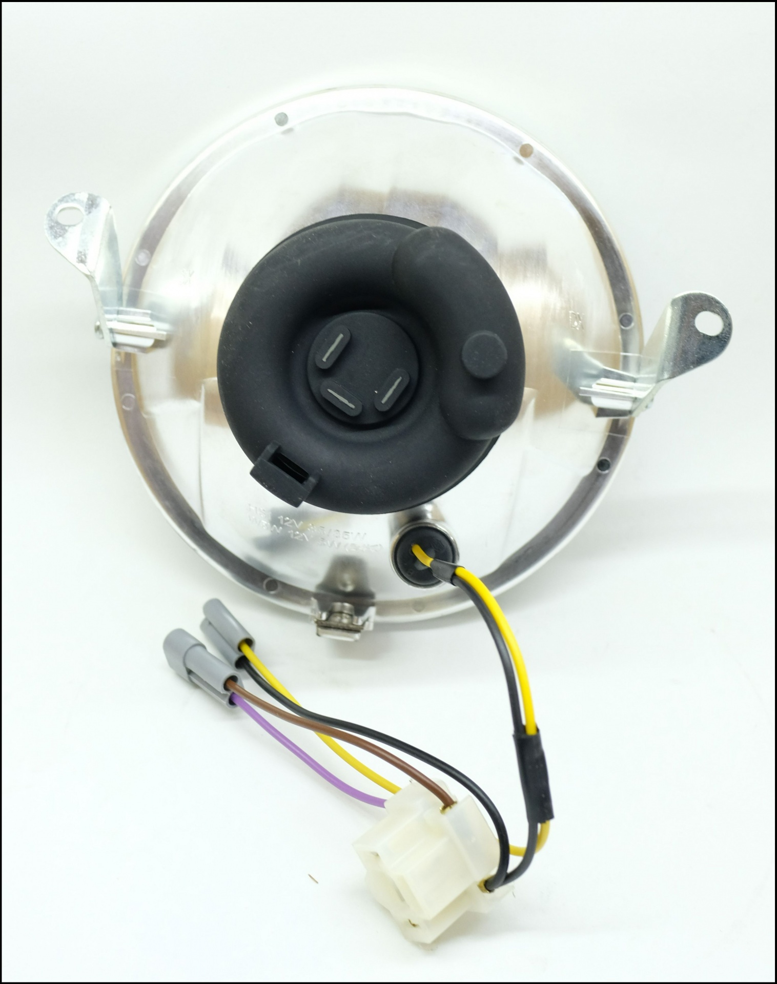 Farol redondo automóvel transparente com fios e conectores