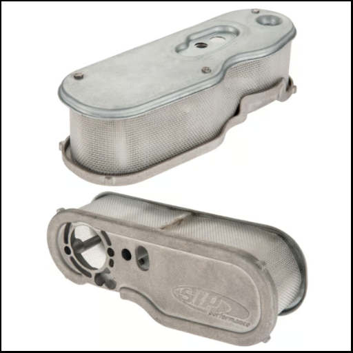 Dois filtros metálicos cinzentos para automóveis com inscrição SIP PERFORMANCE.