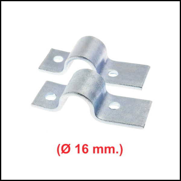 Dois suportes metálicos prateados com texto (Ø 16 mm.)