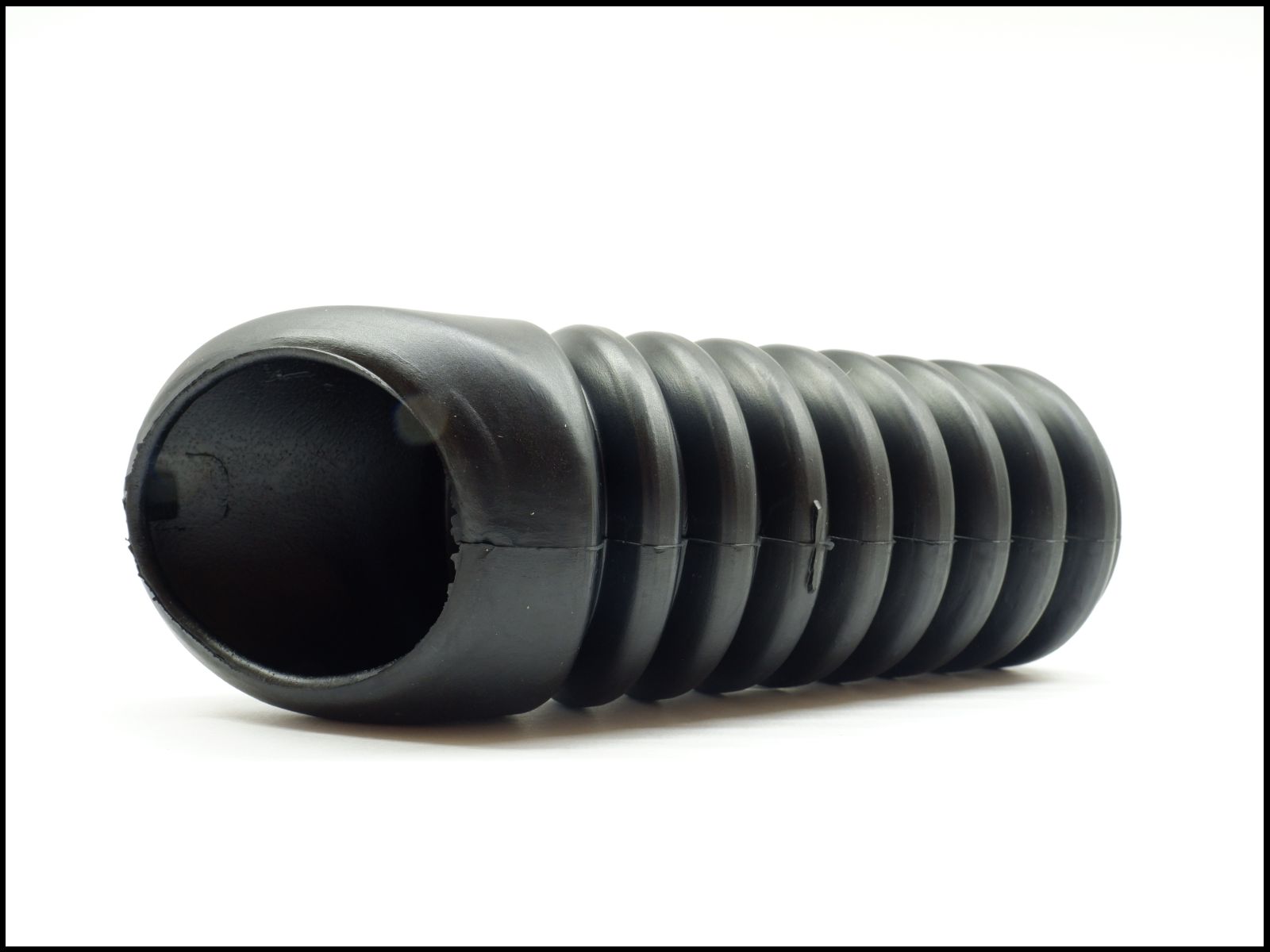 Protetor cilíndrico preto com ranhuras sobre fundo branco