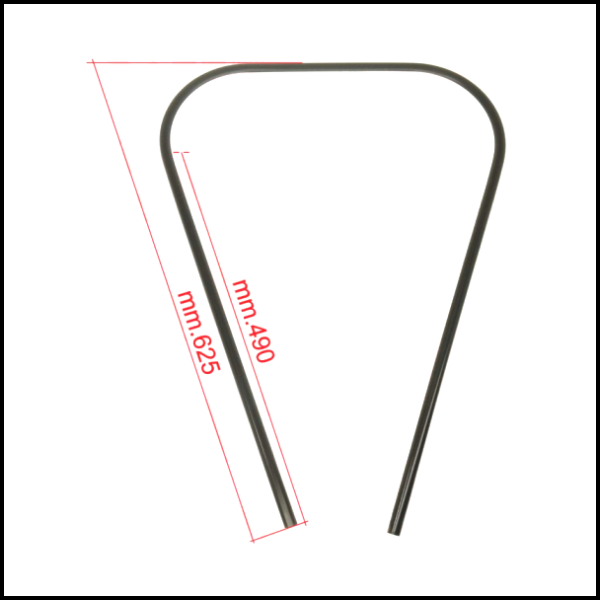Estrutura metálica em forma de U com medidas indicadas em vermelho