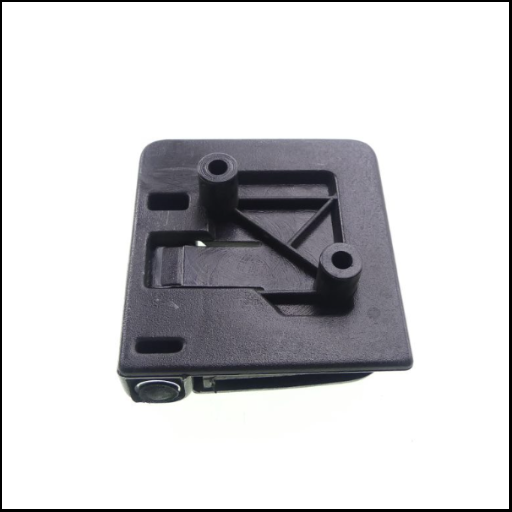 Peça plástica preta quadrada com relevo sobre fundo branco