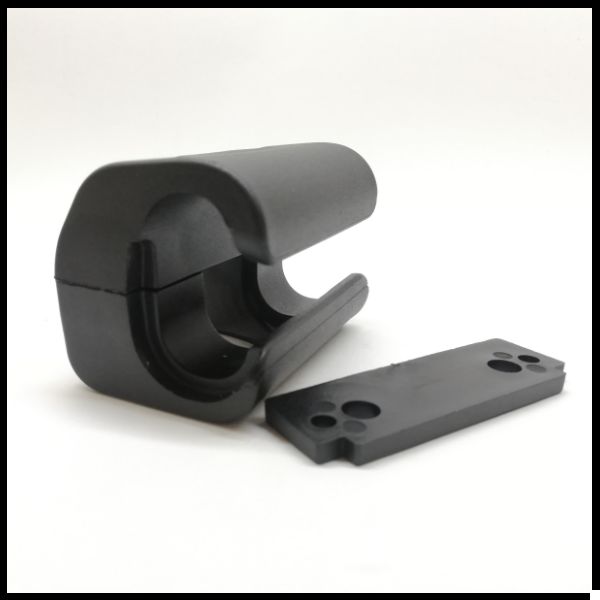 Produto em plástico preto com duas peças distintas sobre fundo branco