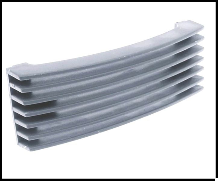 Grelha plástica cinza curva com lâminas horizontais