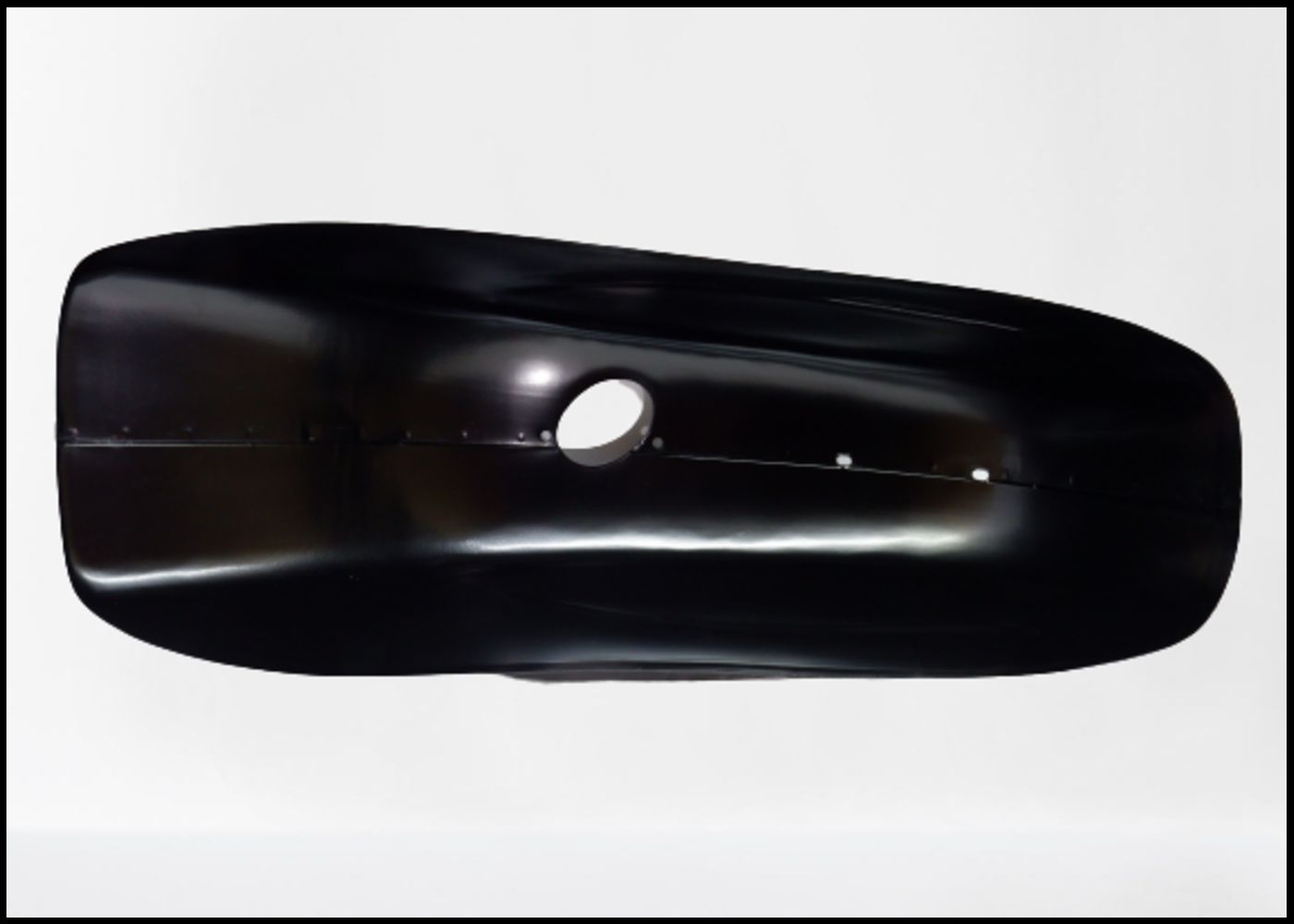 Prancha preta lisa com orifício circular sobre fundo branco