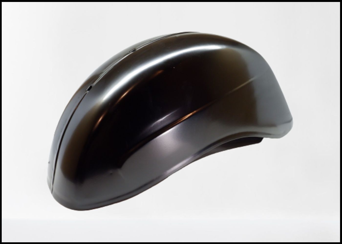 Capacete preto aerodinâmico com acabamento brilhante sobre fundo branco