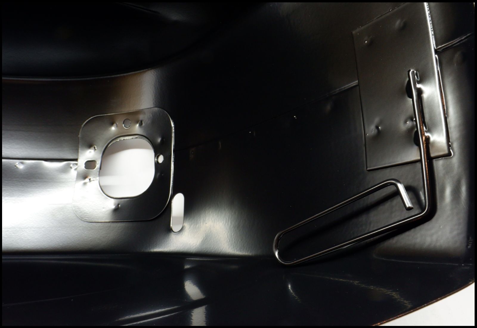 Interior metálico preto com recorte e chave hexagonal