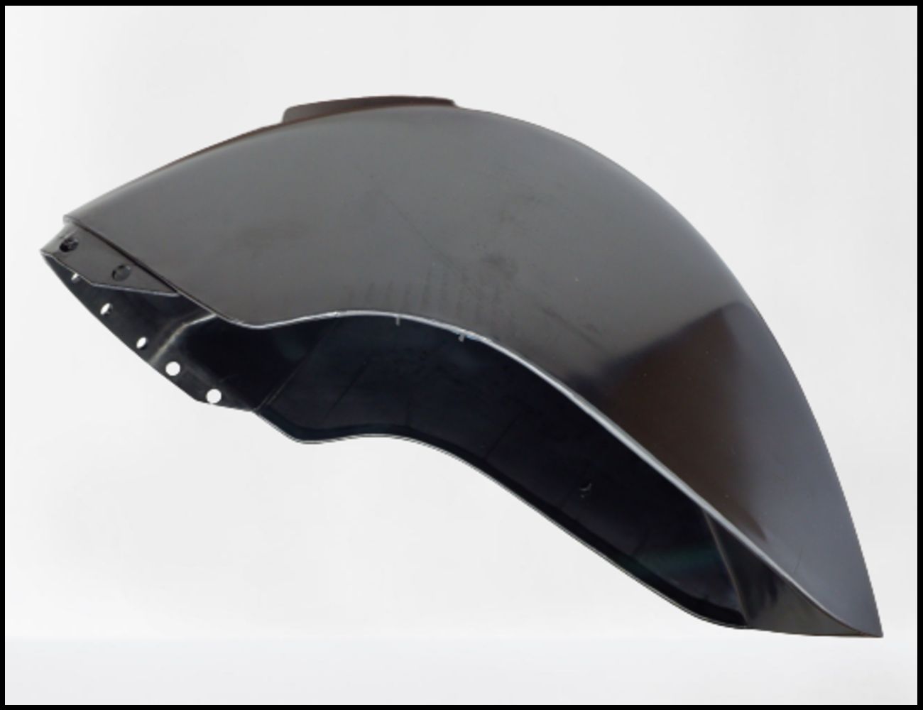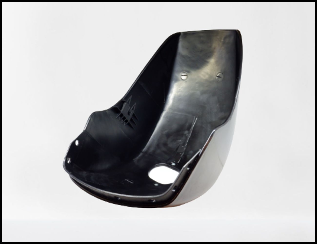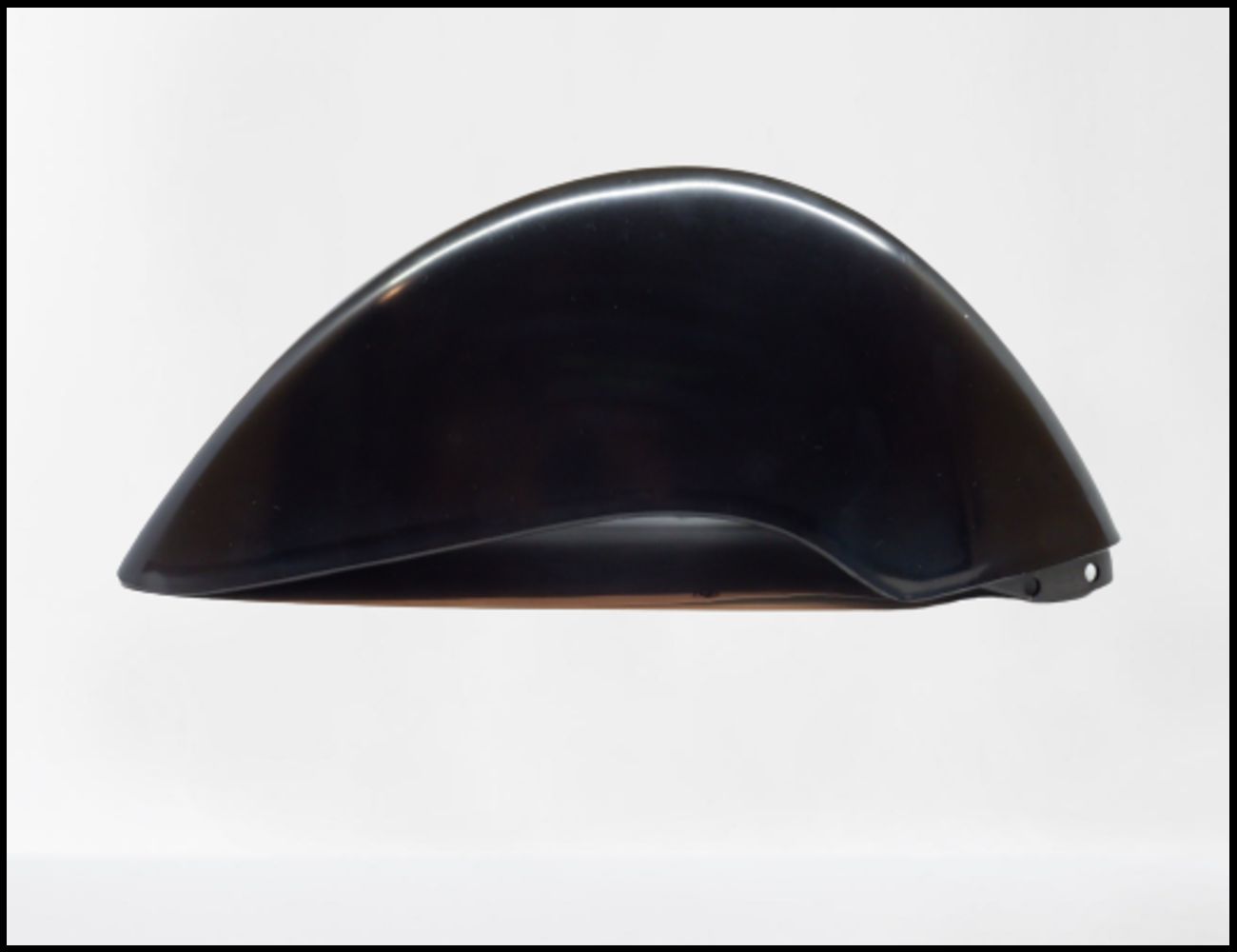 Parafango preto em plástico com superfície lisa e curva