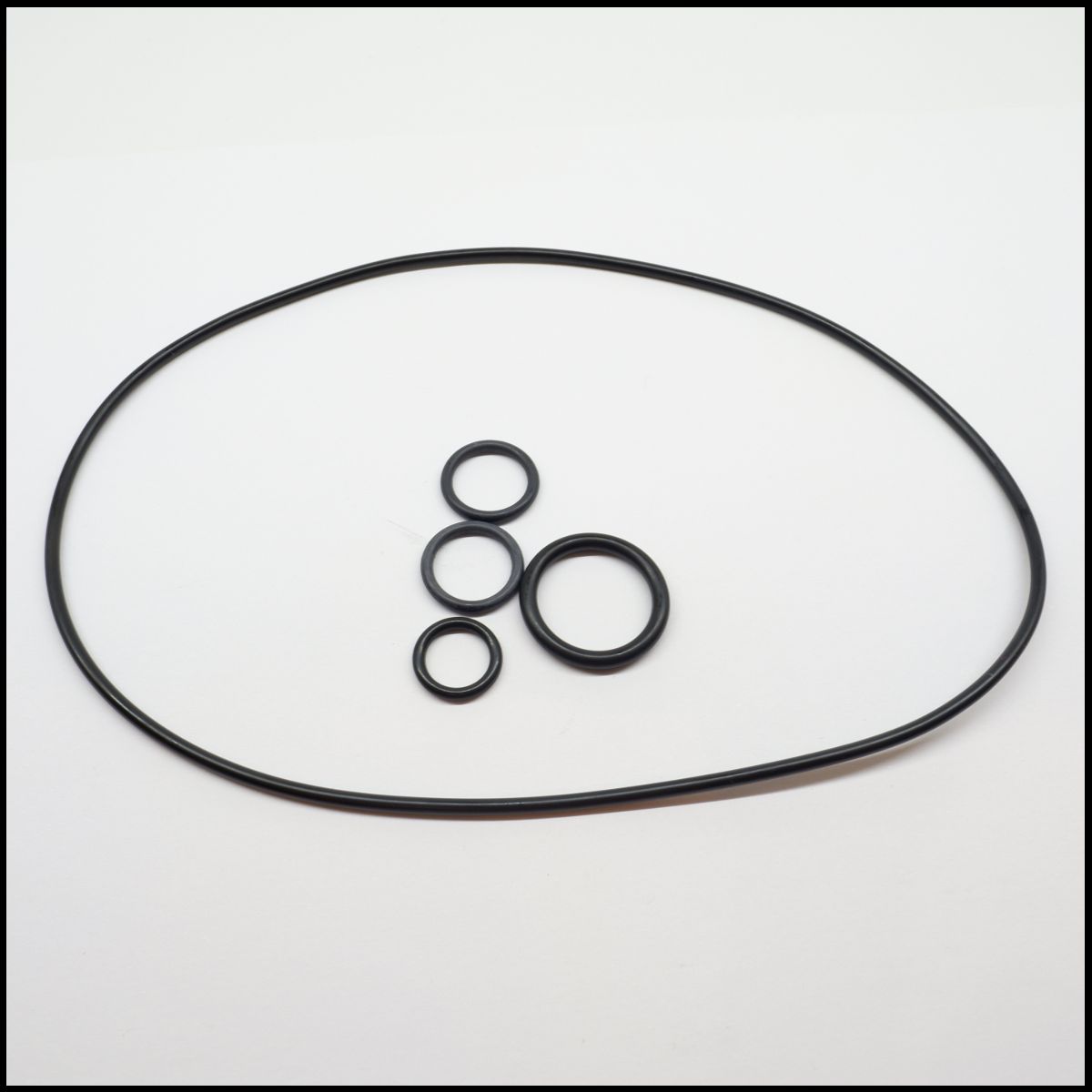 Conjunto de anéis O-ring pretos em vários tamanhos sobre fundo branco