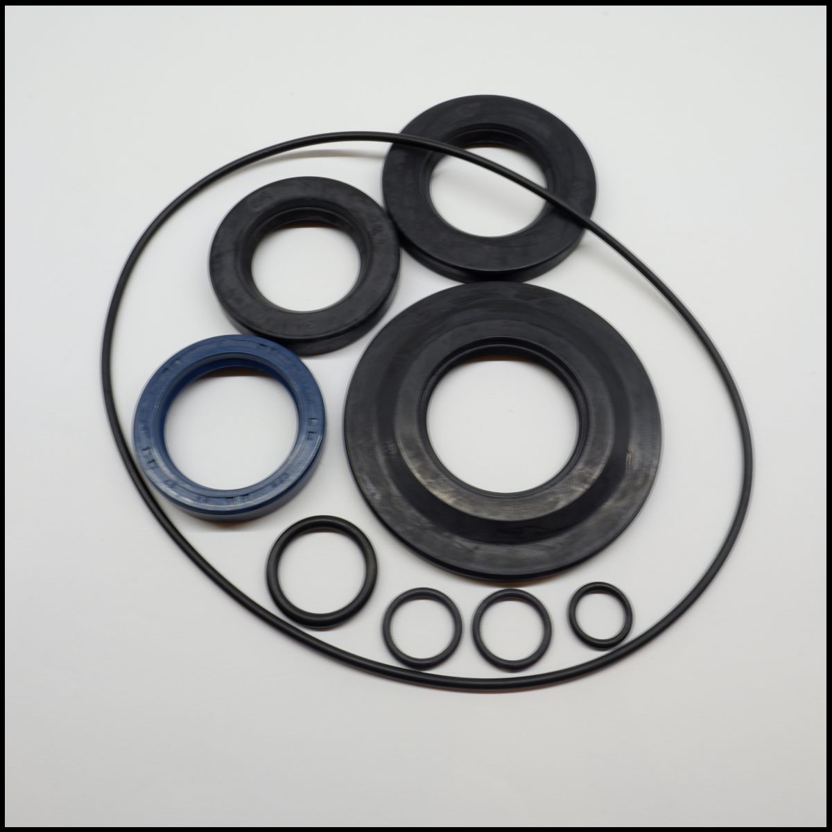 Conjunto de juntas e anéis de borracha de várias dimensões negros e azul