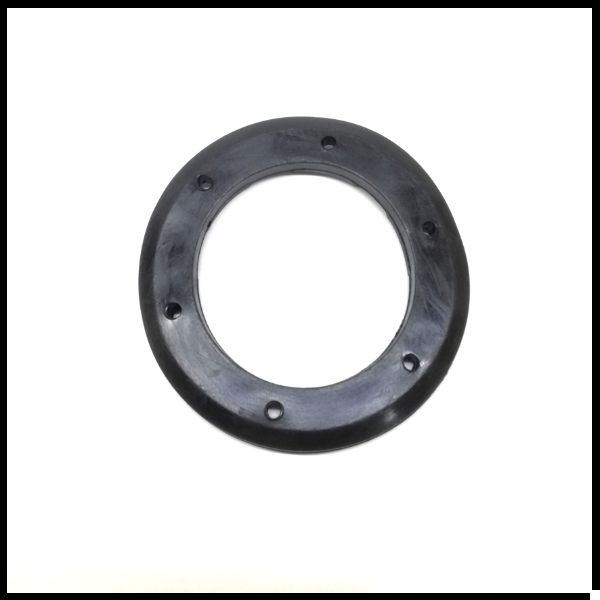 Anel circular cinza com sete orifícios numa superfície branca